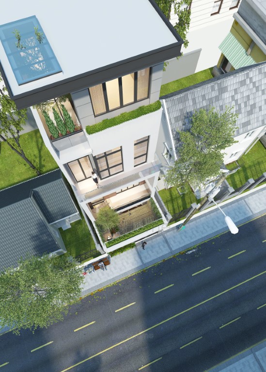 Thiết kế kiến trúc nhà biệt thự mặt phố nghệ an hiện đại hòa nhập với sắc xanh của thiên nhiên, mà thiên nhiên bao giờ cũng làm say đắm lòng người.