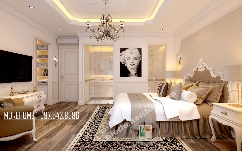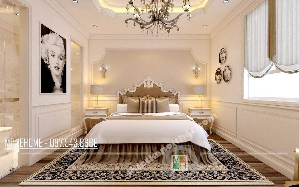 Với thiết kế nội thất chung cư Green Star, kiến trúc sư sử dụng tông màu trắng sáng làm nền tạo không gian đồng bộ, dễ dàng làm nổi bật các chi tiết thiết kế. Phong cách thiết kế tân cổ điển được lựa chọn thể hiện cái Tôi trang trọng và tinh tế của gia chủ. Đối với các thiết kế tân cổ điển, kiến trúc sư thiên về sử dụng các đường cong và các chi tiết trang trí cầu kỳ làm nổi bật vẻ đẹp sang trọng hơi hướng phương châu Âu cổ điển. Tuy nhiên, điểm yếu của thiết kế tân cổ điển là thiết kế khá chi tiết vì vậy có nhiều khi mang đến cảm giác rối mắt và rườm rà, bên cạnh đó, thiết kế này cũng đòi hỏi sự dày công của cả gia chủ và kiến trúc sư trong việc lựa chọn, sắp đặt và quan sát.
