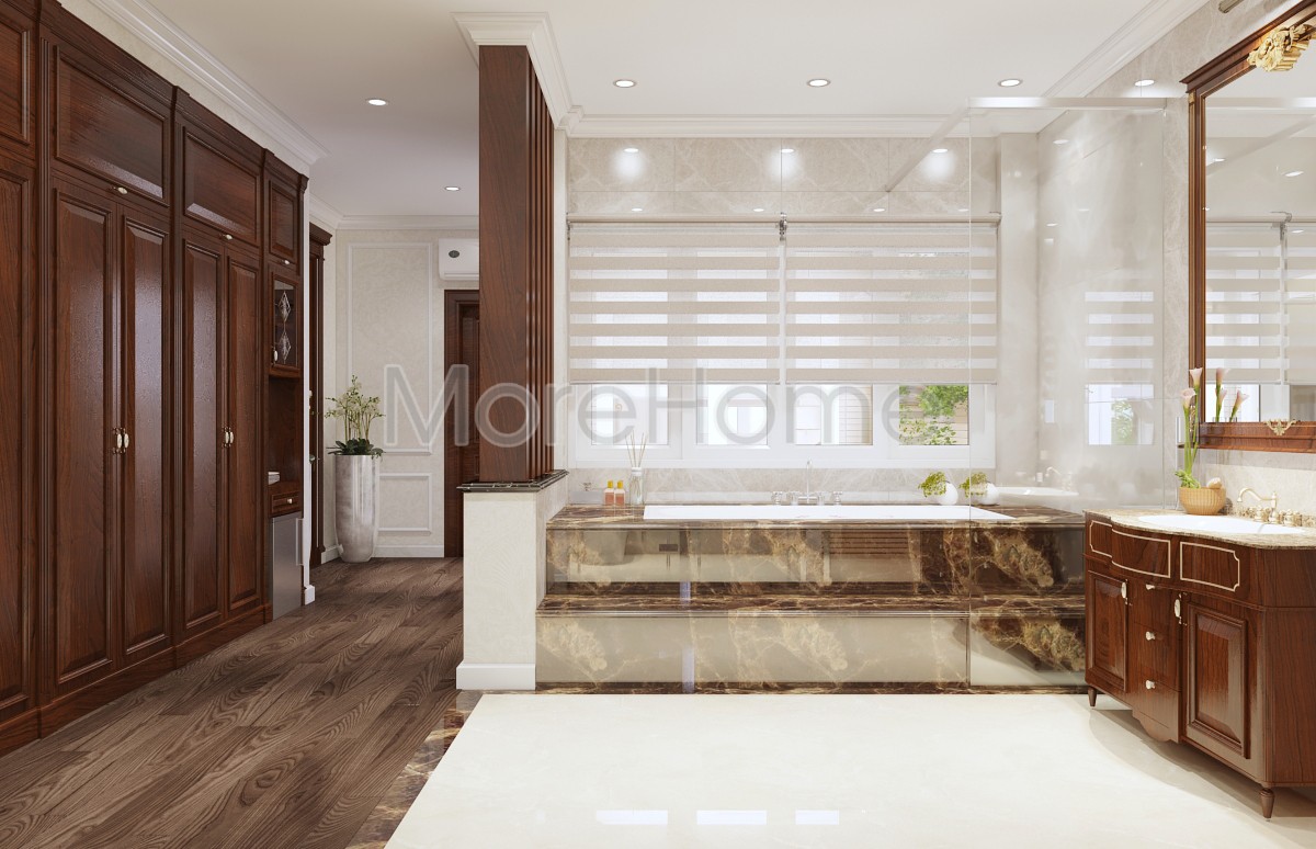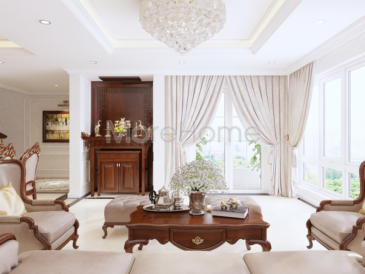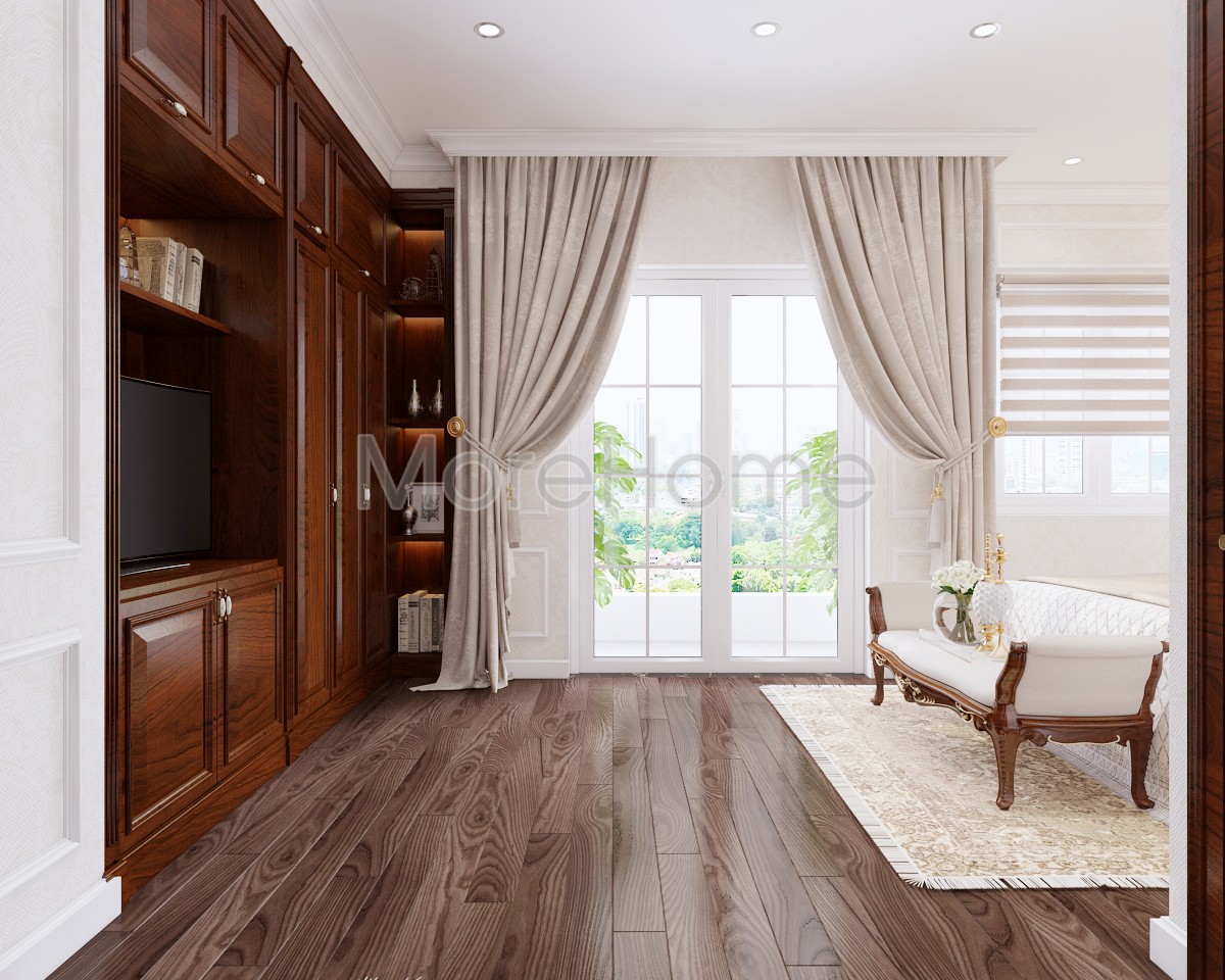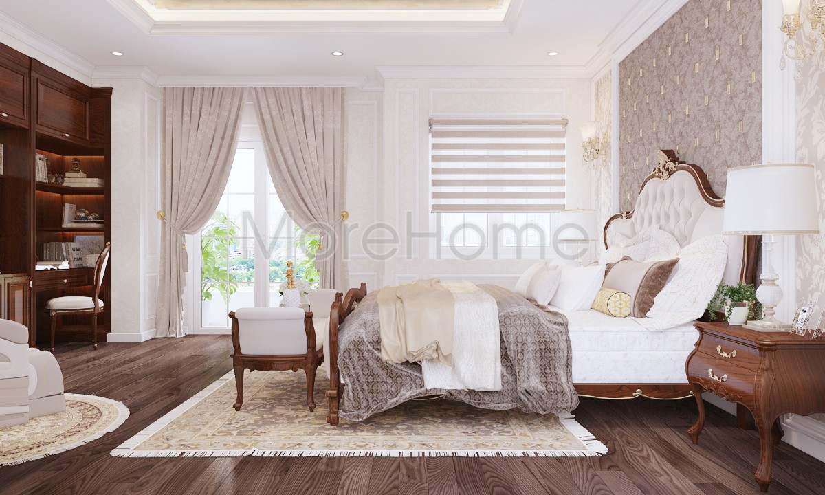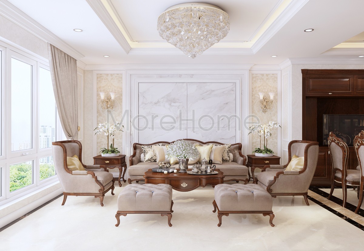 Phong cách cổ điển luôn mang đến một nét đẳng cấp riêng cho không gian nhà. Thiết kế biệt thự tân cổ điển này đã thể hiện được hết những ưu điểm mà phong cách cổ điển có được. Đến với mẫu thiết kế nội thất biệt thự cao cấp Phổ Quang bạn sẽ được chiêm ngưỡng những chi tiết đường nét mềm mại trong nội thất tân cổ điển àm KTS Morehome mang lại.