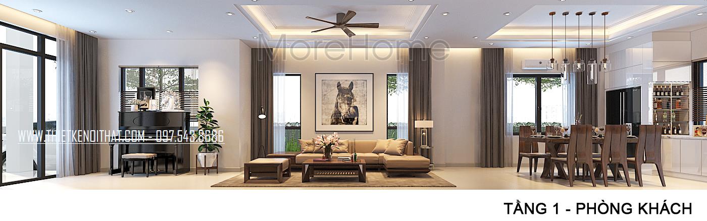 Thêm một mẫu thiết kế nội thất biệt thự cao cấp nữa tại Vinhomes Thăng Long do KTS Morehome thực hiện. Đây là căn biệt thự được thiết kế với chất liệu gỗ óc chó nhập khẩu là chủ yếu, tạo nên một đăng cấp khác của gia chủ ở khu biệt thự này.