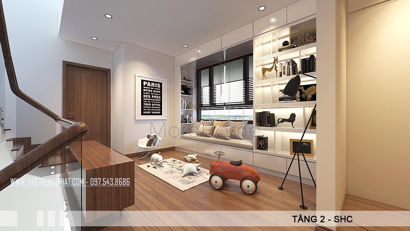 Đây là không gian phòng khá tiện nghi cho gia chủ ở tầng 3. Với những người khách của con thì có thể được tiếp đãi với không gian riêng ở tầng 3, được thiết kế không kém không gian tầng 1 go oc cho cũng được áp dụng cho không gian phòng khách nhỏ này.