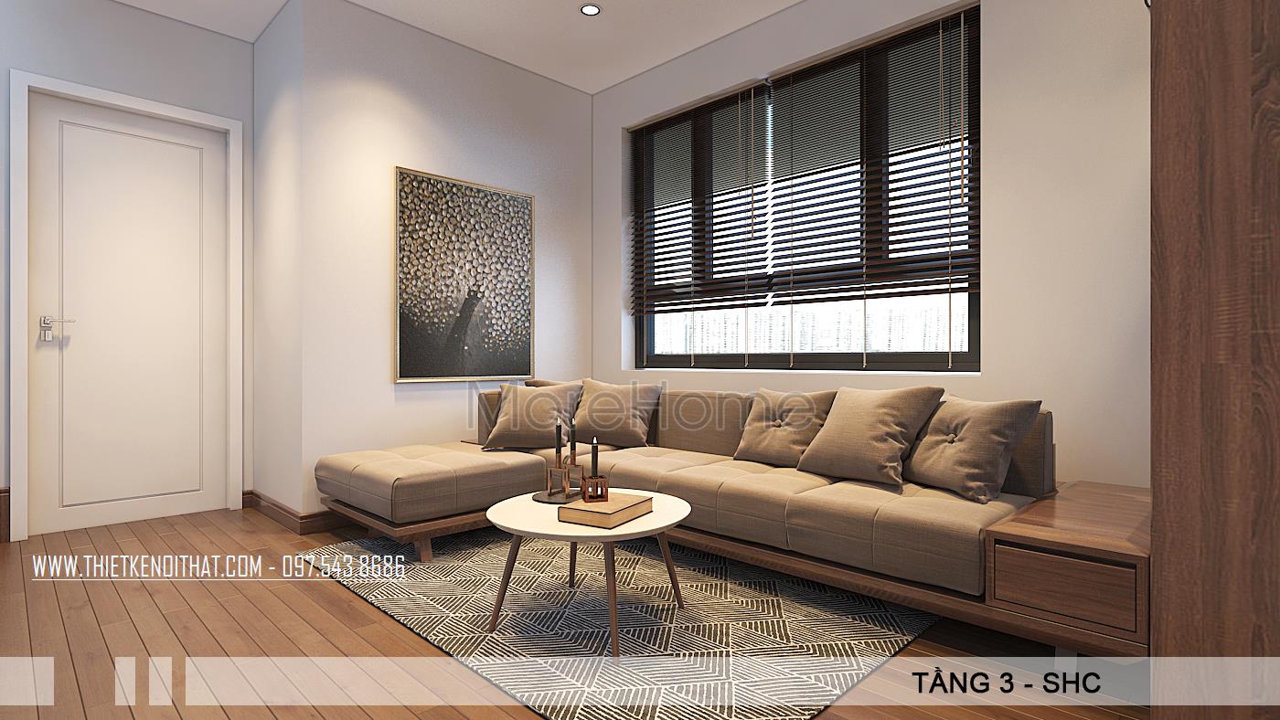 Bên cạnh đó, những đồ nội thất gỗ trong phòng khách như bộ sofa, kệ ti vi, kệ tủ,.. được thiết kế kết hợp chặt chẽ với hệ thống đèn nhằm tạo ra không gian ấm cúng mà tĩnh lặng, thư thái mà nhẹ nhàng.