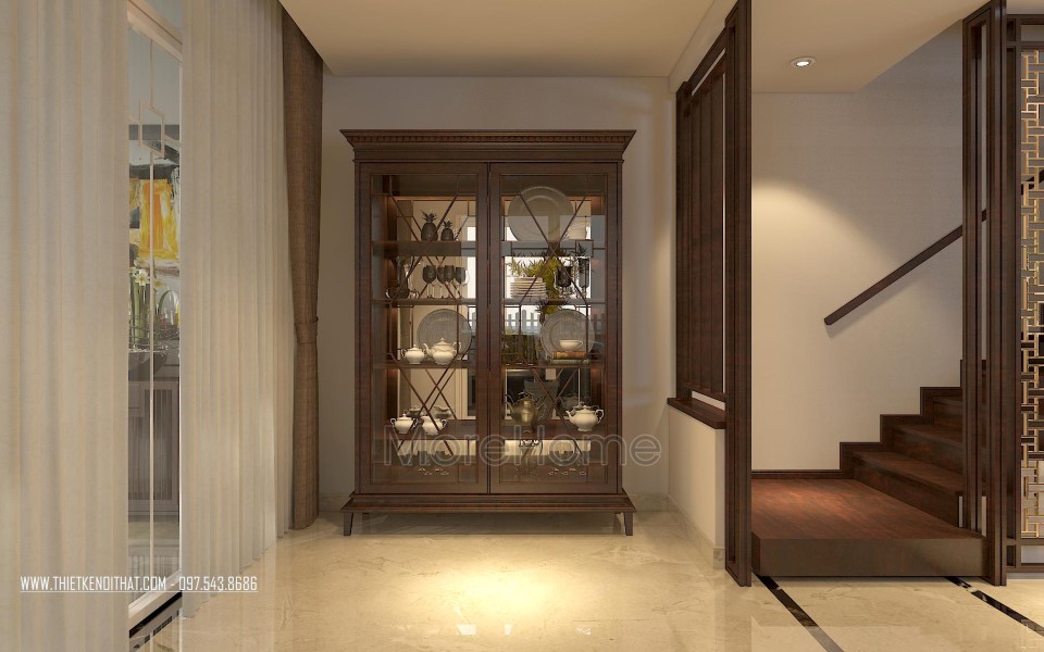 Một điểm đặc biệt không thể không nhắc đến chính là thiết kế bức vách ngăn khéo léo tạo một mặt phẳng ấn tượng. Thiet ke noi that biet thu Vinhomes Thang Long này không những đảm bảo tính rõ ràng trong thiết kế, giúp phân chia không gian một cách hợp lý, bên cạnh đó còn góp phần lớn giúp tạo điểm nhấn về mặt thẩm mỹ. Cách tạo hoa văn không quá cầu kỳ nhưng vô cùng hút mắt, để lại ấn tượng tốt cho cả không gian.