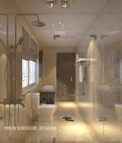Cuối cùng là thiết kế nội thất phòng tắm hiện đại. Các vật liệu nhẹ được ưu ái sử dụng nhằm tạo cảm giác mở và thông suốt cho không gian. Bạn có nhu cầu thiết kế nội thất và thi công biệt thự VinHomes Thăng Long vui lòng liên hệ: 0975438686 để được tư vấn chi tiết và nhận bản vẽ 3D để có thể lựa chọn cho mình những phong cách thiết kế nội thất phù hợp nhất với không gian căn nhà của bạn. Morehome là đơn vị uy tín hàng đầu chuyên về lĩnh vực thiết kế thi công nội thất trọn gói tất cả các công trình. Bạn có thể truy cập trực tiếp vào website: thietkenoithat.com để thấy được sự lựa chọn đơn vị thiết kế thi công của mình là hoàn toàn đúng đắn, Morehome luôn sẵng sàng đồng hành cùng bạn.