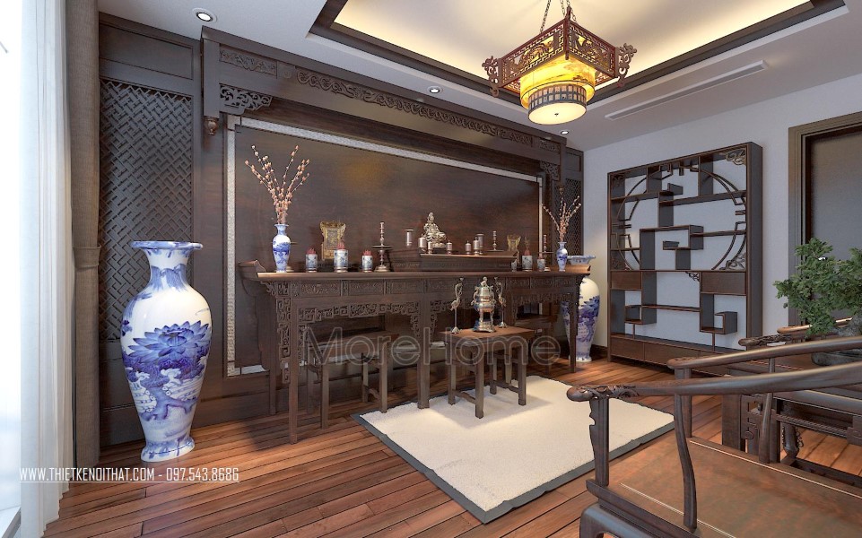 Thiết kế nội thất phòng thờ nghiêm trang và tinh tế