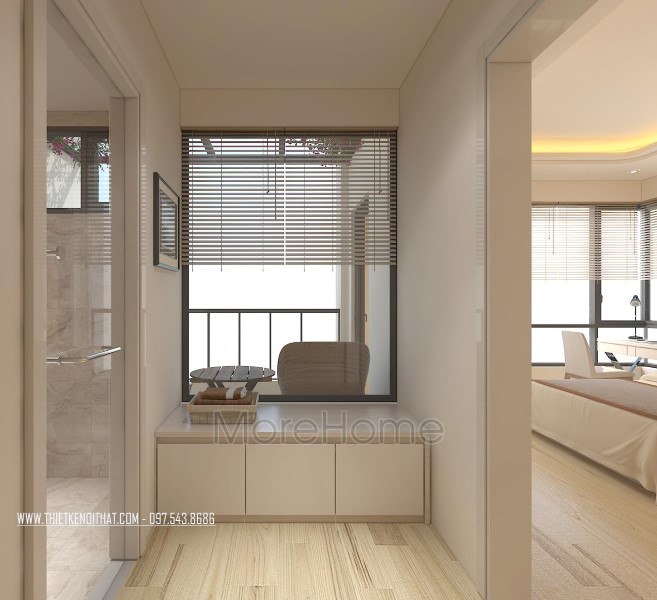 Đặc biệt ở thiết kế nội thất không gian này, kiến trúc sư đã khéo léo thay thế các bức tường thô cứng thành các không gian cửa kính cường lực trong suốt, đem ánh sáng tự nhiên vào phòng, vừa đảm bảo tính thẩm mỹ, tăng diện tích mở, lại giúp gia chủ tiết kiệm một lượng lớn điện năng tiêu thụ hằng tháng.