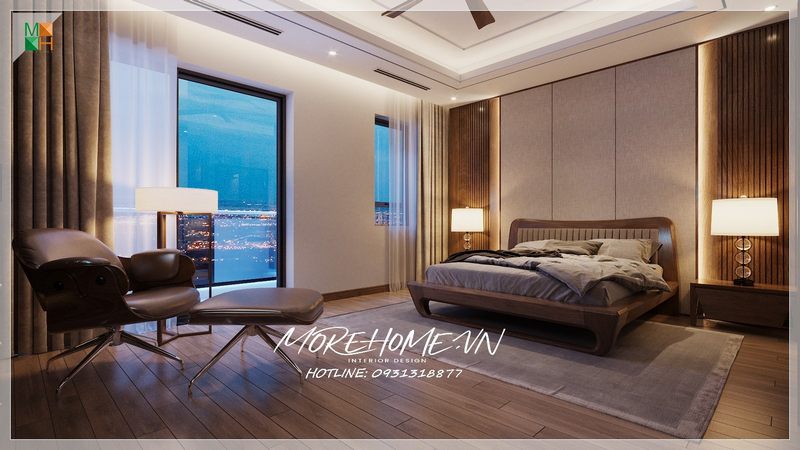 Phòng được trang trí với những đường nét trạm khắc nhẹ nhàng trên từng chi tiết nội thất đồ gỗ và các đồ decor trang trí đẹp mắt, tạo nên một cảnh ấn tượng và cuốn hút.
