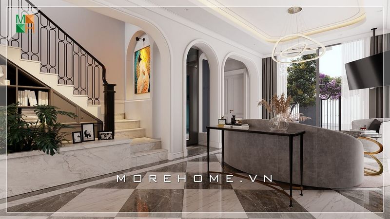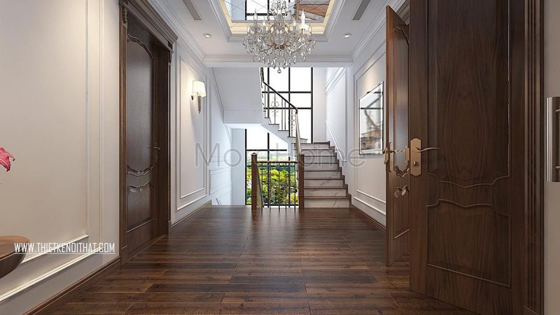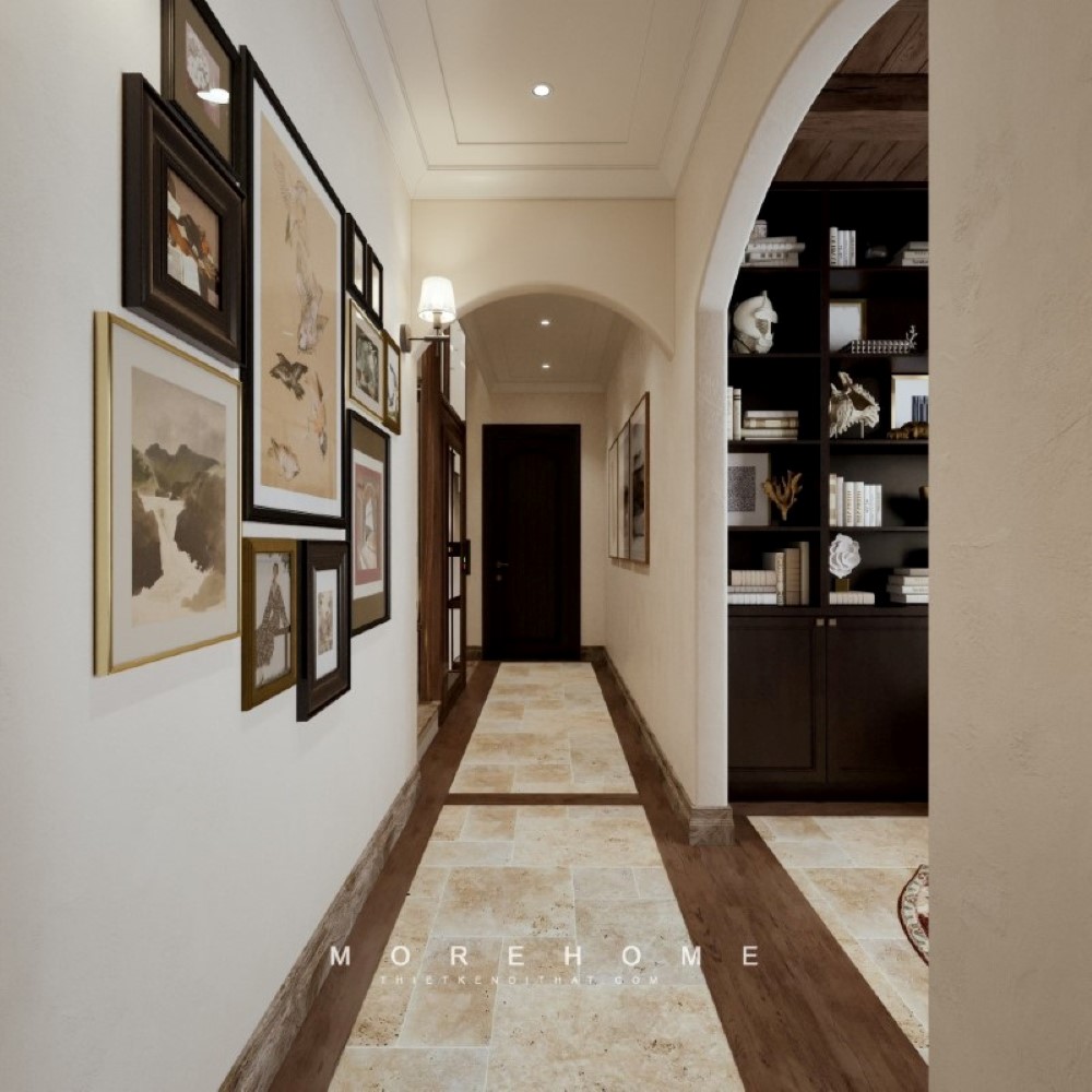 Thiết kế hành lang tầng lối đi chung của các không gian phòng với nhau một mạch ngầm đoàn kết, mang ý nghĩa phong thủy riêng cho không gian nhà