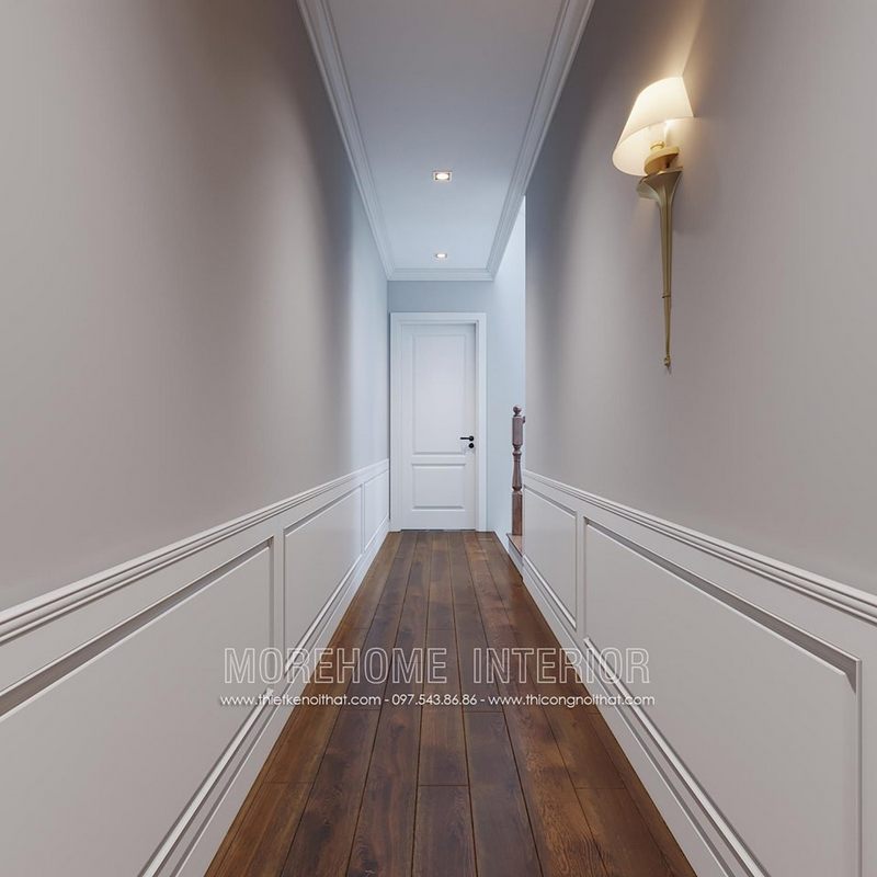 Mẫu cửa gỗ tân cổ điển màu trắng sang trọng khiến không gian nơi đây trở nên tiện nghi hơn.