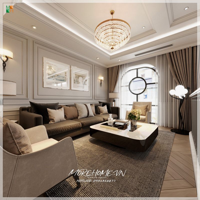 Morehome mang lại sự tinh tế và ấn tượng đến với không gian sống của gia đình bằng mẫu thiết kế phòng khách chung cư.