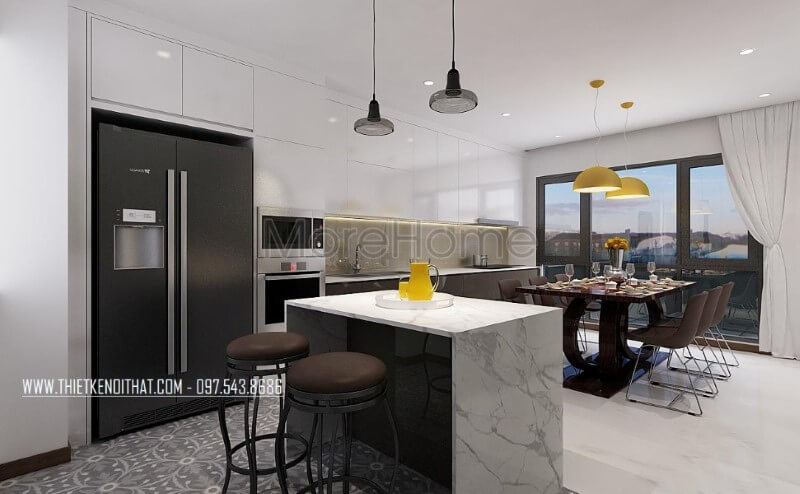 Thiết kế nội thất phòng bếp chung cư đơn giản, hiện đại và tiện nghi
